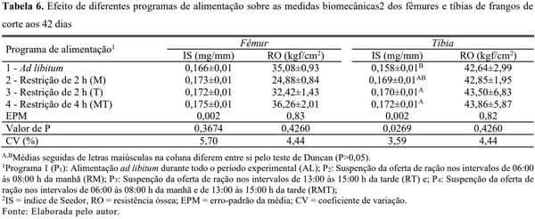 Pelicano, E. R. L., Bernal, F. E. M., Furlan, R. L., Malheiros, E. B., & Macari, M. (2005). Efeito da temperatura ambiente e da restrição alimentar protéica ou energética sobre o ganho de peso e crescimento ósseo de frangos de corte. Arquivo Brasileiro de Medicina Veterinária e Zootecnia, 57, 353-360.