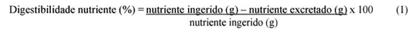 Os cálculos dos coeficientes de digestibilidade dos nutrientes pelo método dos indicadores Cr2O3 e LIPE® foram feitos pela seguinte fórmula 2: