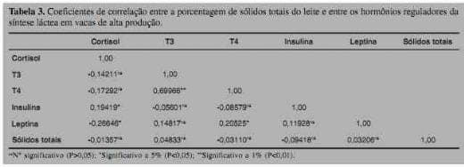 Com as informações obtidas permite-se observar que, em conjunto, os indicadores metabólicos não apresentariam relação com a composição do leite, em razão dos baixos coeficientes de correlação. A dinâmica própria das células da glândula mamária para a síntese e secreção dos componentes do leite impedem uma relação única e linear entre cada metabólito e a soma dos sólidos, já que cada um dos componentes segue um padrão particular. por essa razão, atualmente podem ser encontrados modelos únicos que estudam a composição de gordura, de proteína ou a síntese de lactose (Heuer et al., 2000; KIDA, 2003). No presente trabalho, se apresentam relações básicas, com o intuito de encontrar o indicador do metabolismo energético mais confiável para predizer a composição do leite. De acordo com os resultados obtidos, não seria possível indicar um metabólito a partir do qual se possa estimar os diferentes componentes, com exceção dos triglicerídeos e sua relação com os sólidos totais do leite. Fracas correlações de pearson foram observadas entre glicose e fructosamina com a proteína do leite, igualmente entre gordura do leite e neFa e entre colesterol com proteína e lactose do leite (tabela 2).