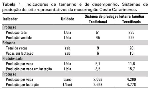Dos resultados do desempenho técnico e financeiro de dois sistemas de produção de leite identificados como mais importantes de Santa Catarina, observou-se a produção de leite familiar tradicional é o que apresenta maior dificuldade de geração de renda.