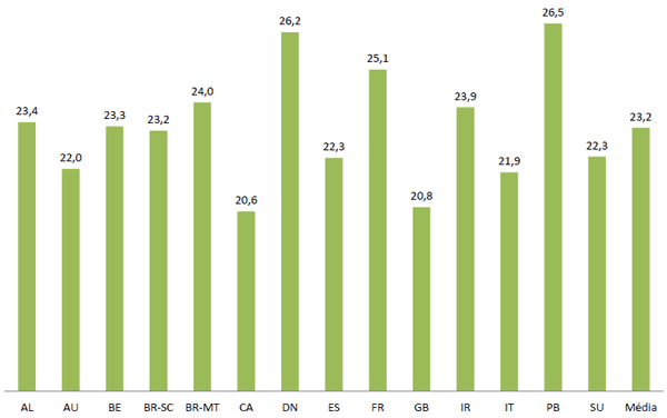 A menor produtividade da mão de obra brasileira impacta negativamente na competitividade, mas é mais do que compensada pelas diferenças salariais com os demais países (Tabelas 7 e 8). É importante chamar a atenção para os Países Baixos e a Dinamarca, que pagam os mais altos salários entre os países do grupo (35% superiores à média europeia), mas tem os menores custos com mão de obra após Brasil e Espanha (esta com salários iguais à média europeia, mas também com alta produtividade). Isso ocorre porque a produtividade da mão de obra nestes três países é 36% superior à média europeia (inclusive Canadá) e 67% superior à média brasileira.