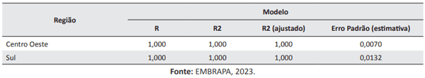 Em relação aos coeficientes da região Centro-oeste, exibidos na Tabela 3, percebeu-se que, com base nos resultados encontrados para essa região, a equação fundamental para a região CO seria: